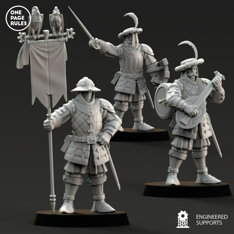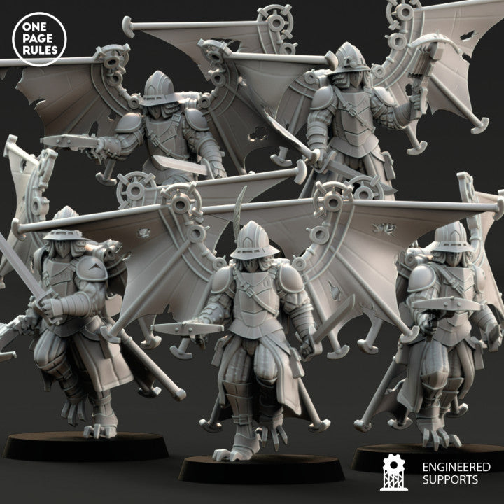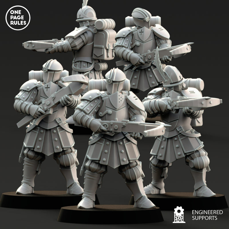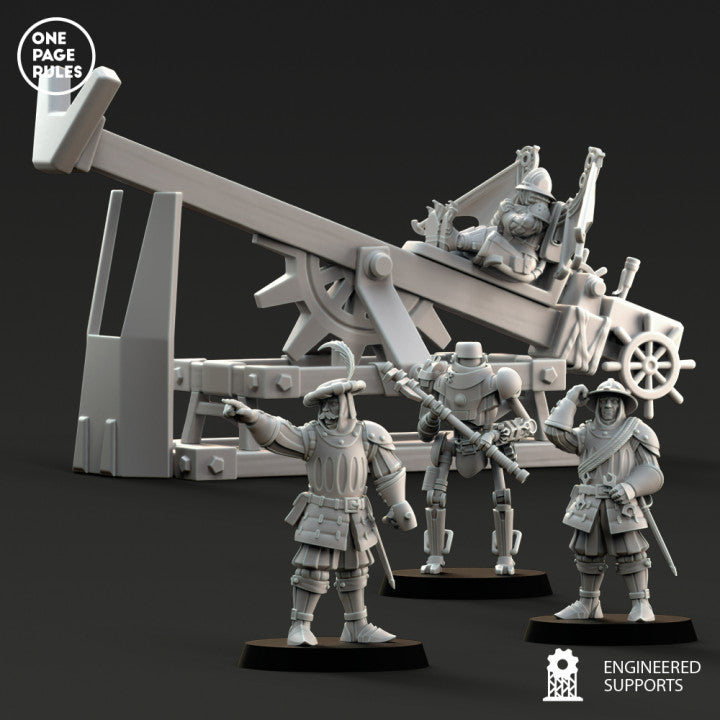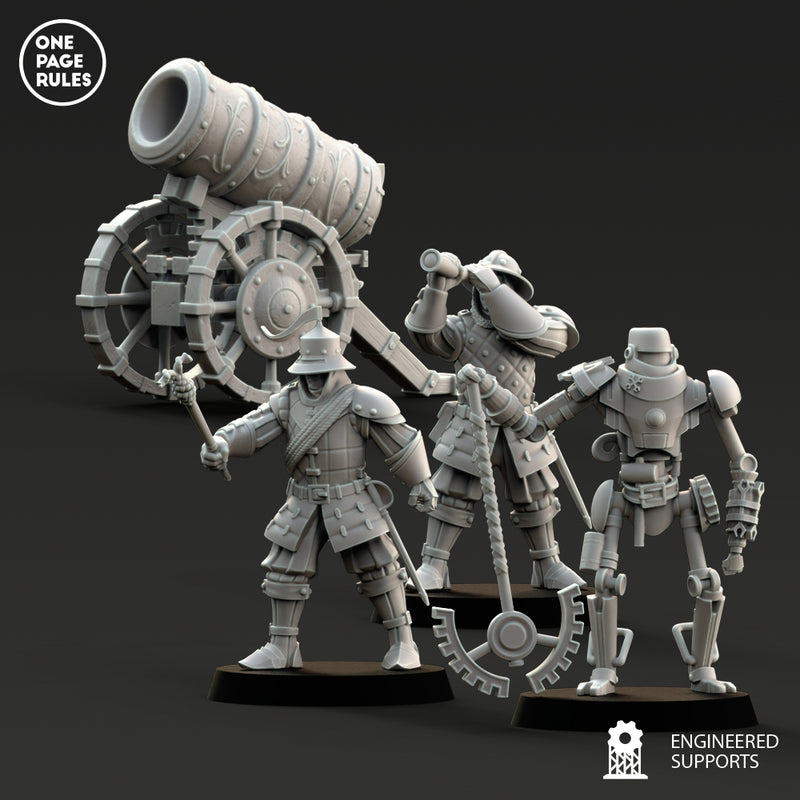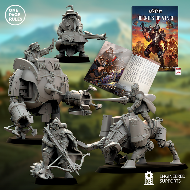 The Duchies of Vinci are an army of highly advanced Humans assisted by their robotic automatons. On the battlefield, they rely on ranged warfare using crossbows and cannons, supported by the more resilient Automa. They were once a collection of poor villages who discovered the intelligence-enhancing Mindstones in the aftermath of the Rift. The Vinci have gained great wealth and knowledge, but guard their secrets and their Mindstones closely to protect themselves from poverty. However, over time, their isolationism has fostered rivalry between the Duchies, causing them to stagnate.
