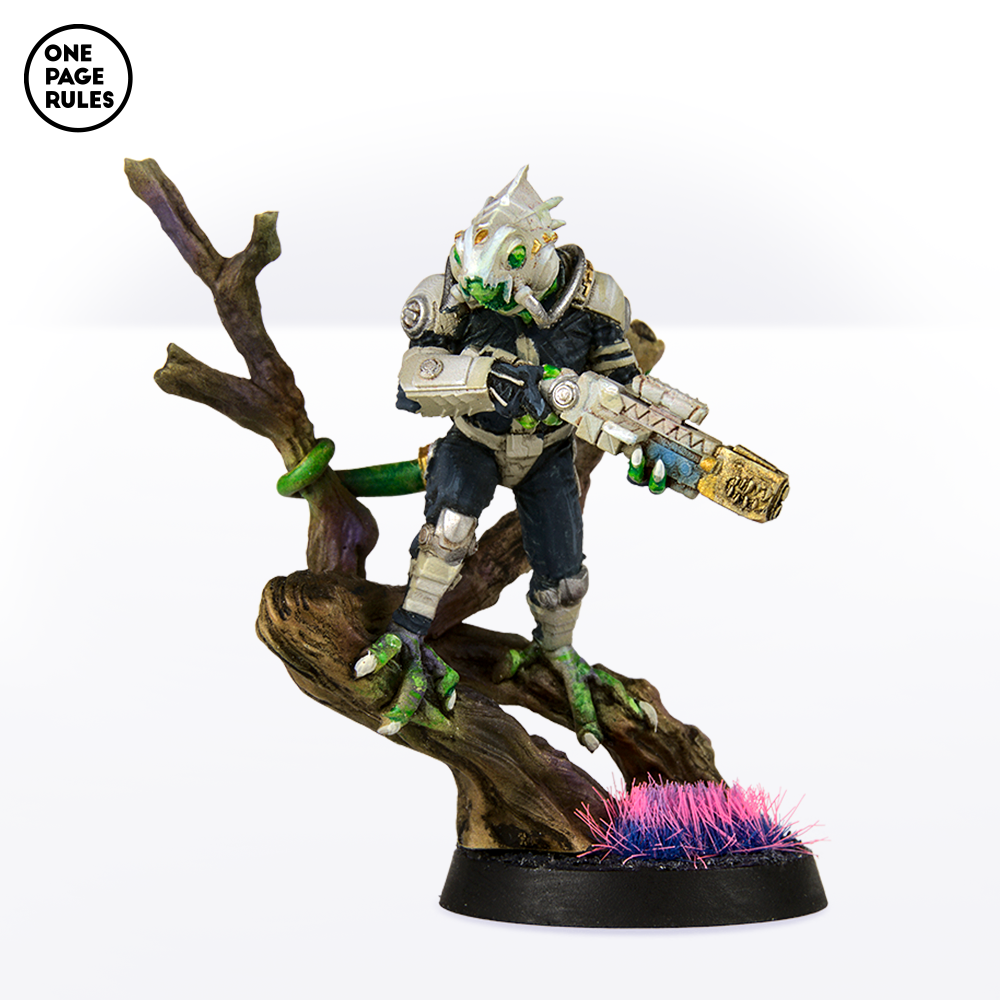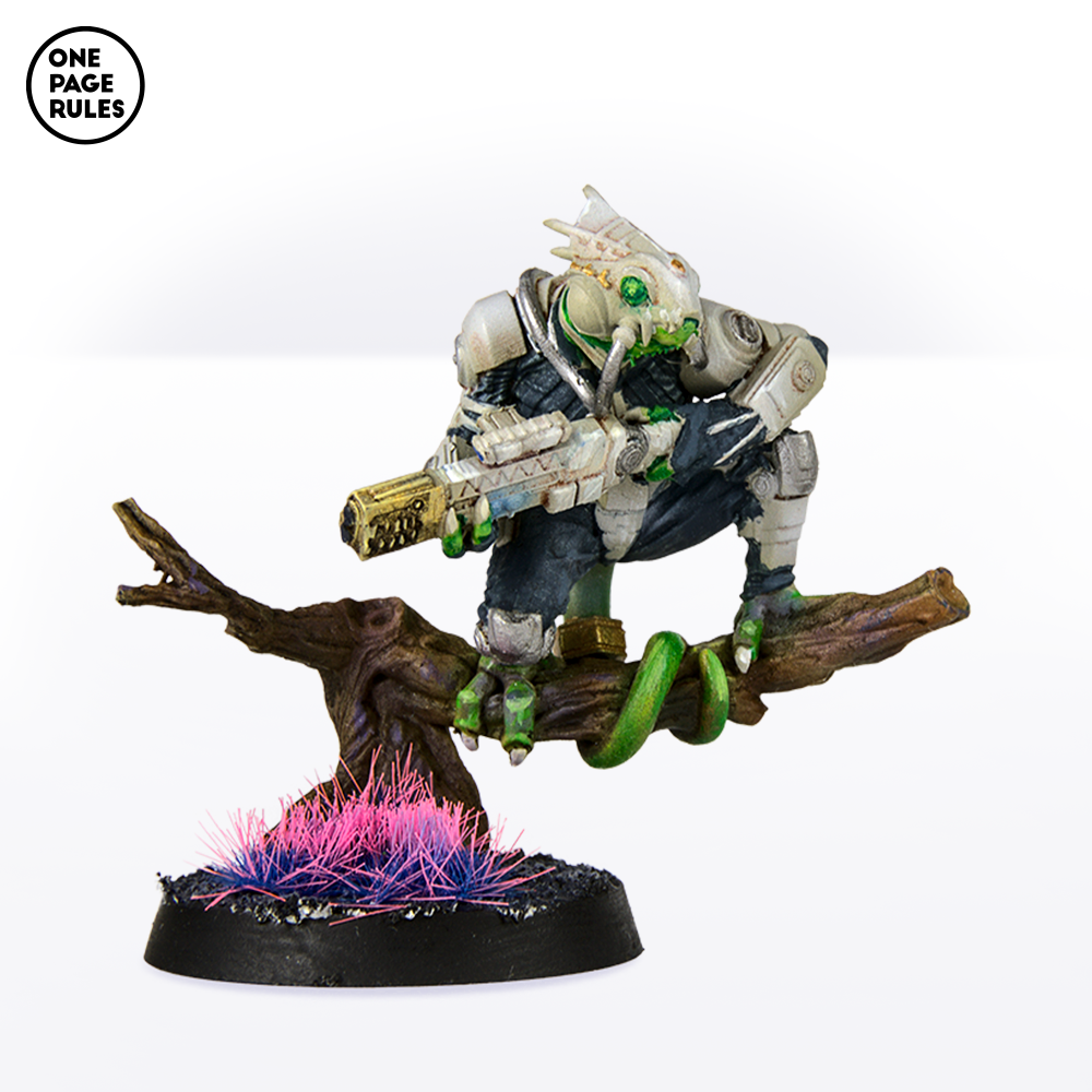 The original model was made by One Page Rules and printed with resin by us here at Miniature Horde. This model was designed to be used in the game Grimdark Future Which rules are available in thier Starter Sets, and the Army Forge where the rules for every army is availbale for Free