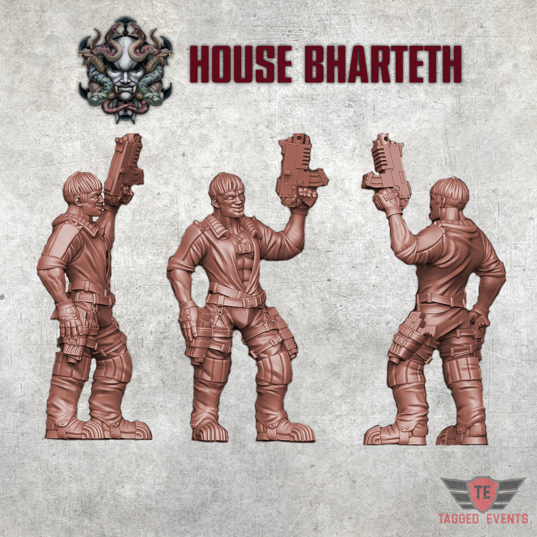 These models are a part of the House Bharteth set. The original model was designed by Tagged Events and printed with resin by us here at Miniature Horde.