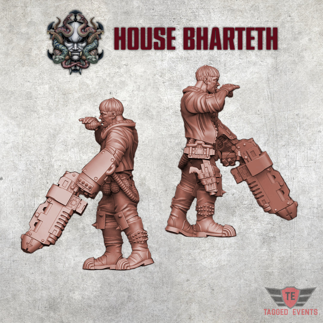These models are a part of the House Bharteth set. The original model was designed by Tagged Events and printed with resin by us here at Miniature Horde.