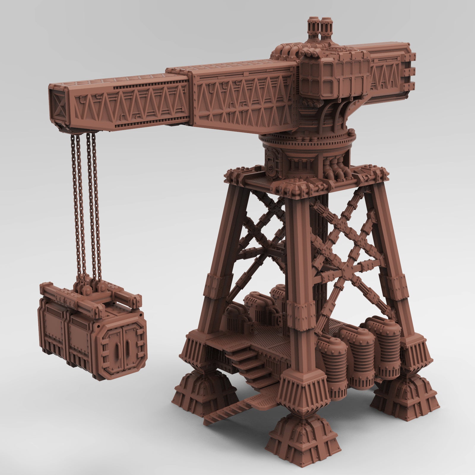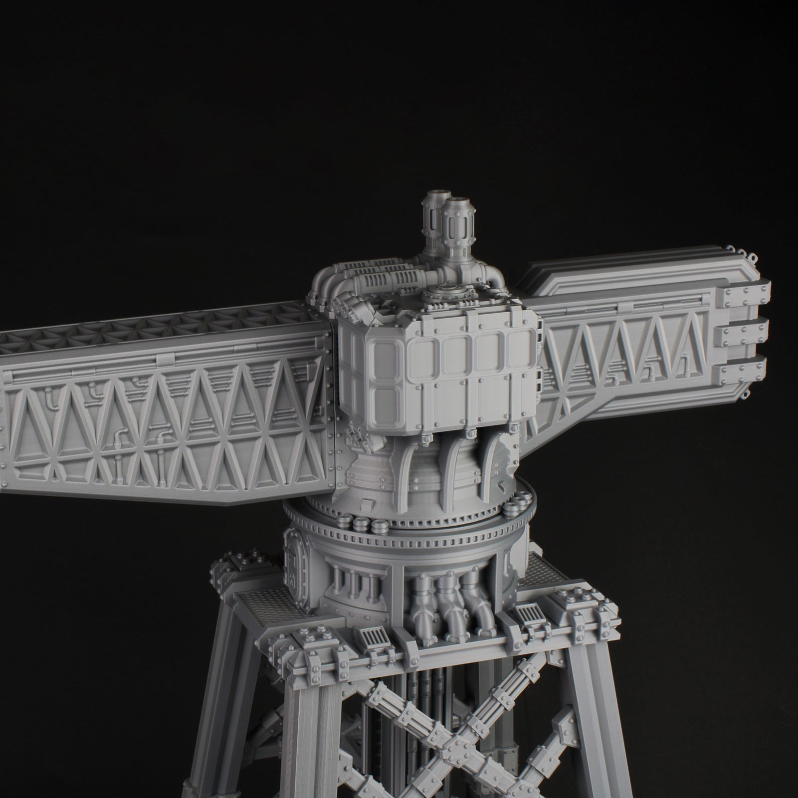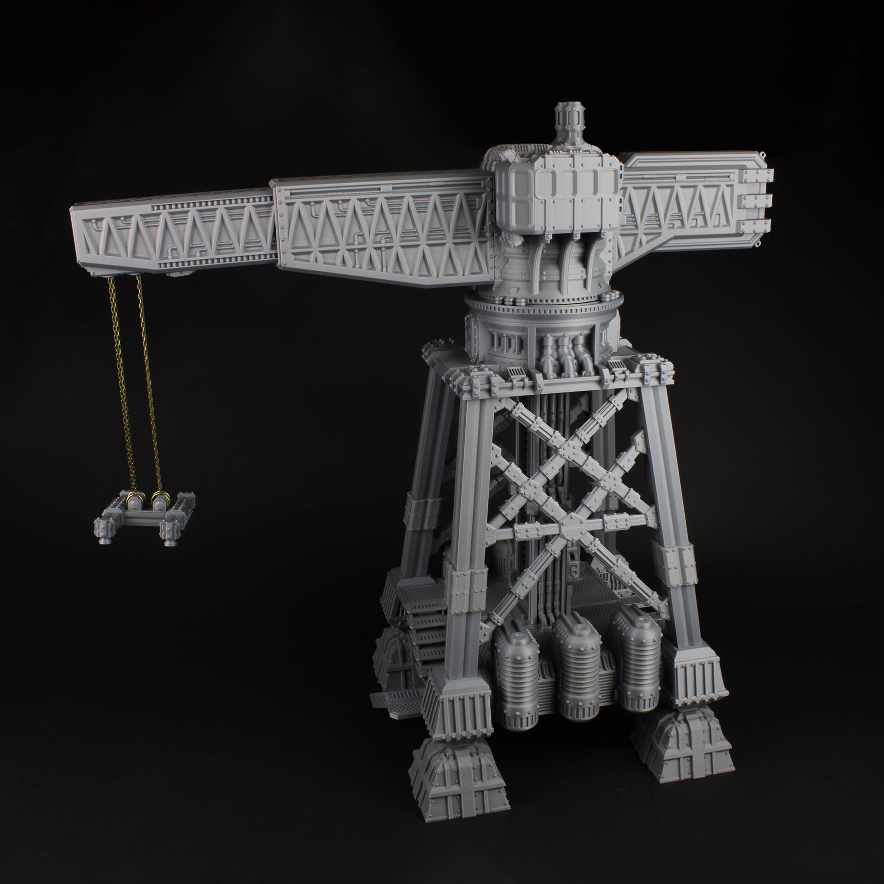 This Dockyard Crane pieces are great to add character to Scum City boards. This range is perfect for use with the sump city ruleset in the Necromunda universe.