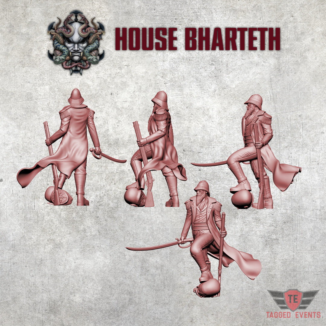 These models are a part of the House Bharteth set. The original model was designed by Tagged Events and printed with resin by us here at Miniature Horde.