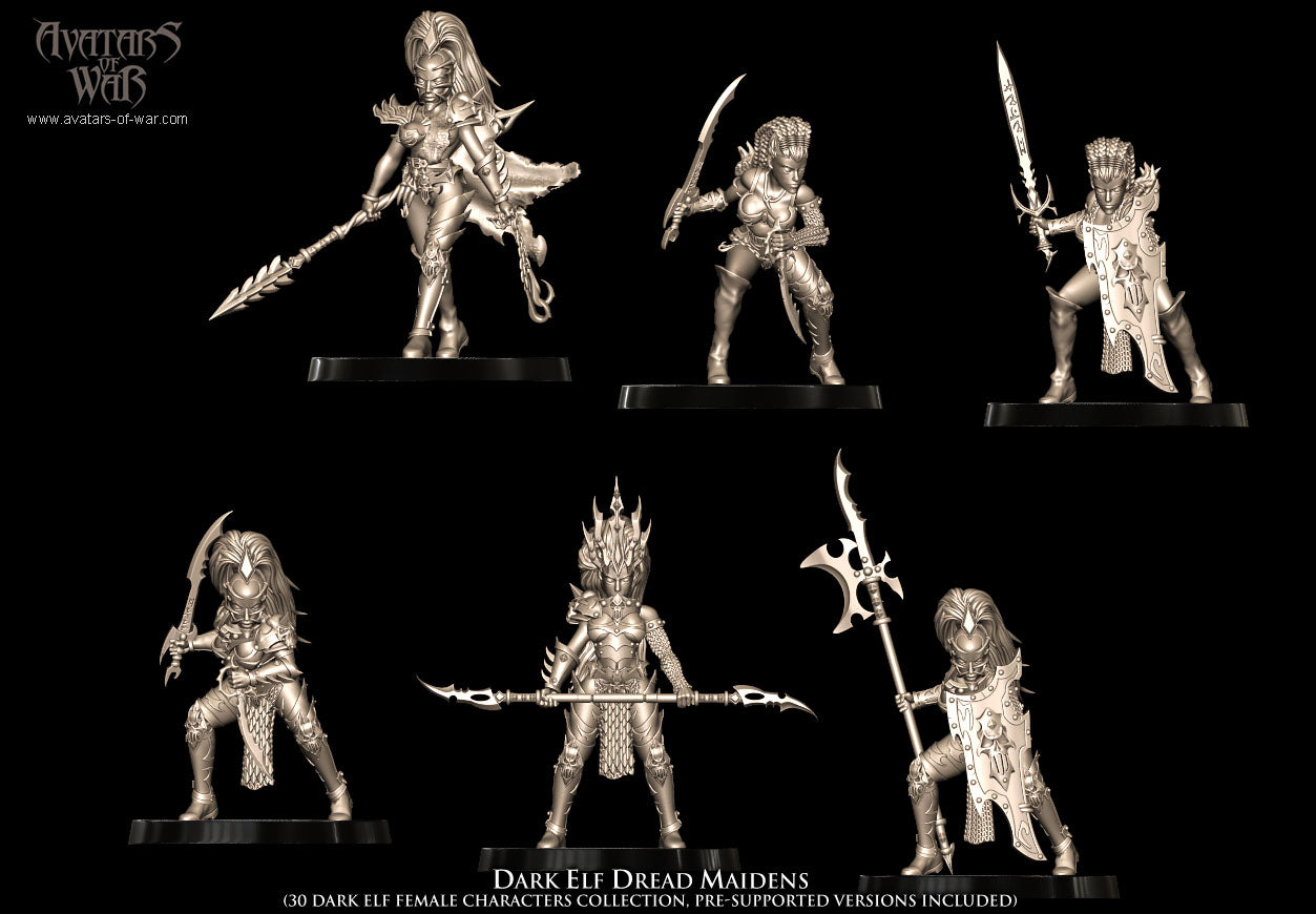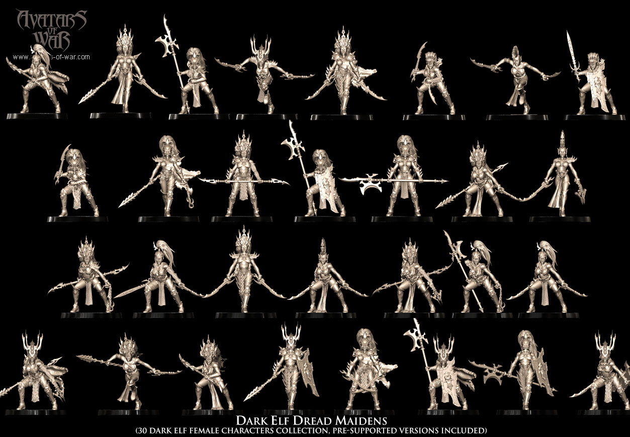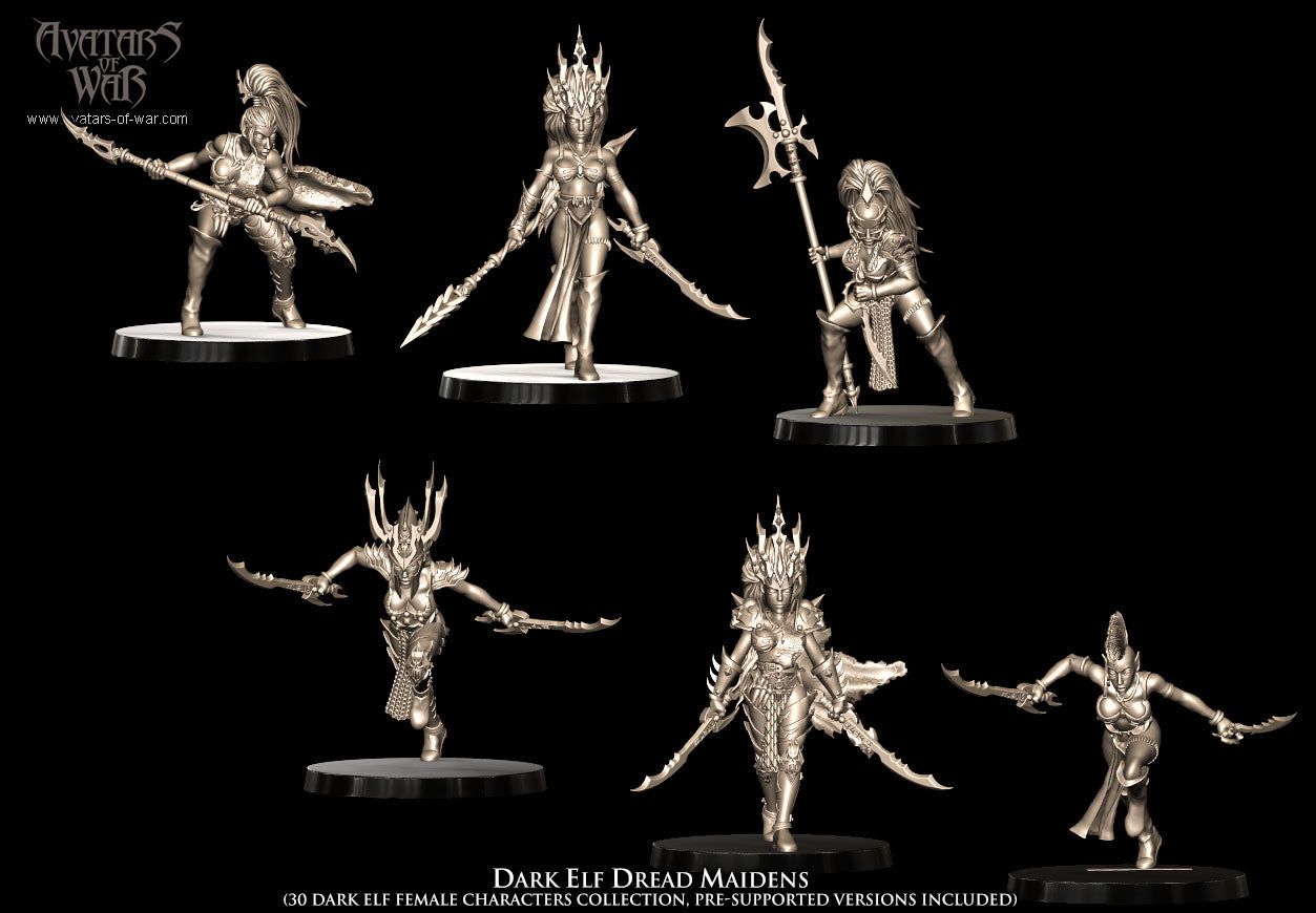 Driven by cruelty and a thirst for power are the Dark Elf Dread Maidens! Pain and suffering is all that awaits those who stand against them. The Dread Maidens make for a terrifying foe, moreso if they decide to leave you alive! These models are a part of the Dark Elf set and make an excellent addition to any Dark Elf force. The original design was made by Avatars of War and printed with resin by us here at Miniature Horde.