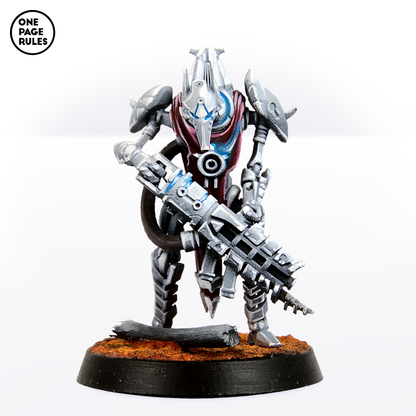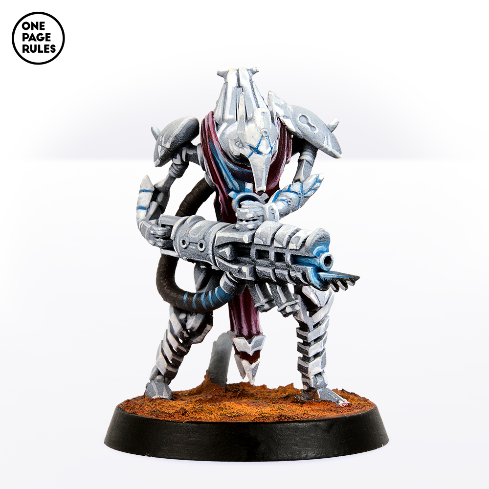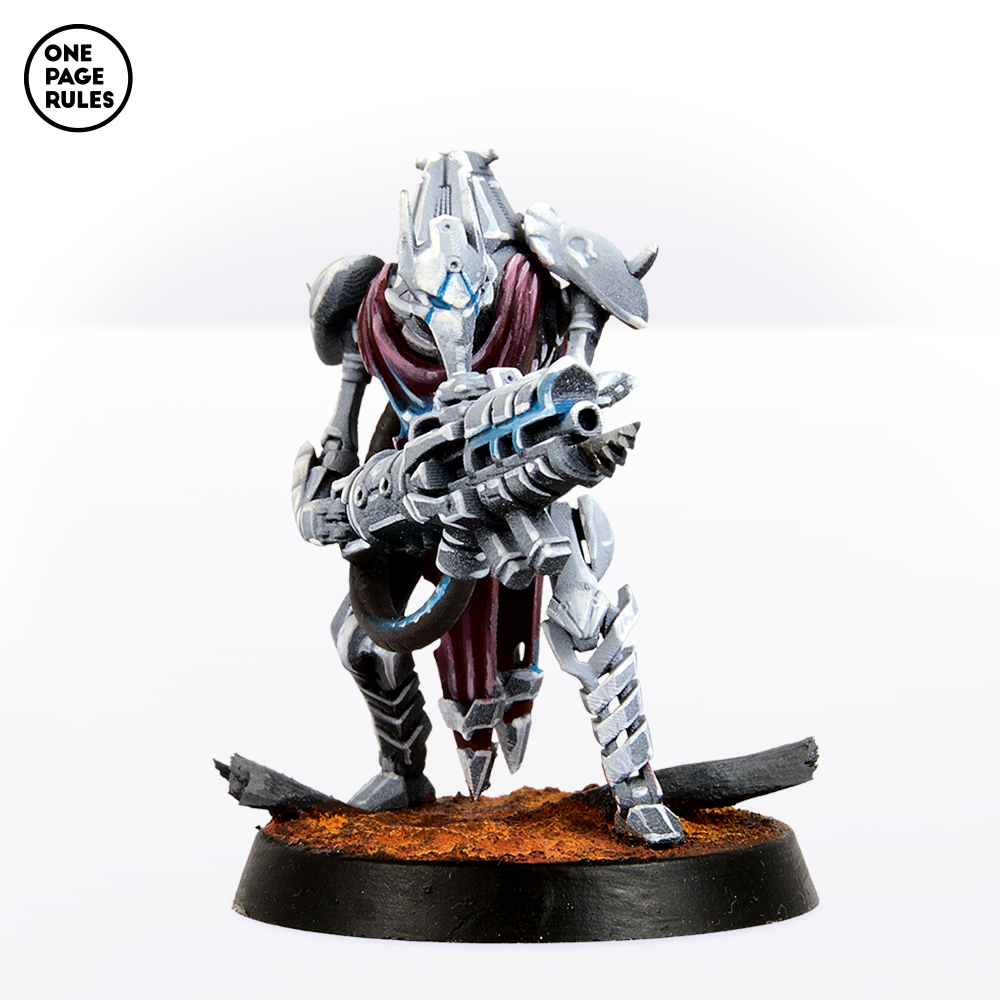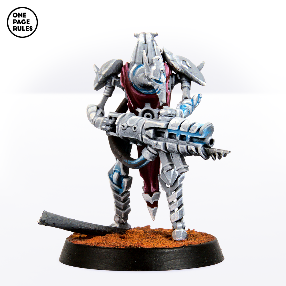The original model was made by One Page Rules and printed with resin by us here at Miniature Horde. This model was designed to be used in the game Grimdark Future Which rules are available in thier Starter Sets, and the Army Forge where the rules for every army is availbale for Free