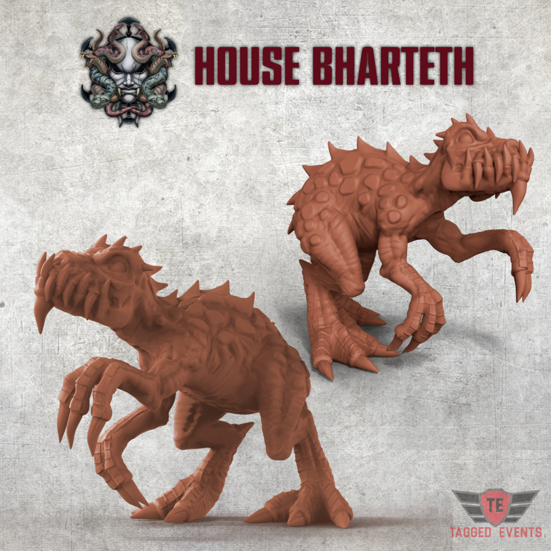 These models are a part of the House Bharteth set. The original model was designed by Tagged Events and printed with resin by us here at Miniature Horde.