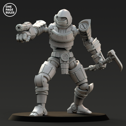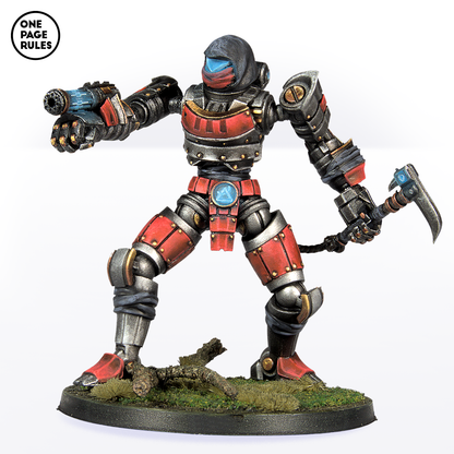 The original model was made by One Page Rules and printed with resin by us here at Miniature Horde. This model was designed to be used in the game Grimdark Future Which rules are available in thier Starter Sets, and the Army Forge where the rules for every army is availbale for Free