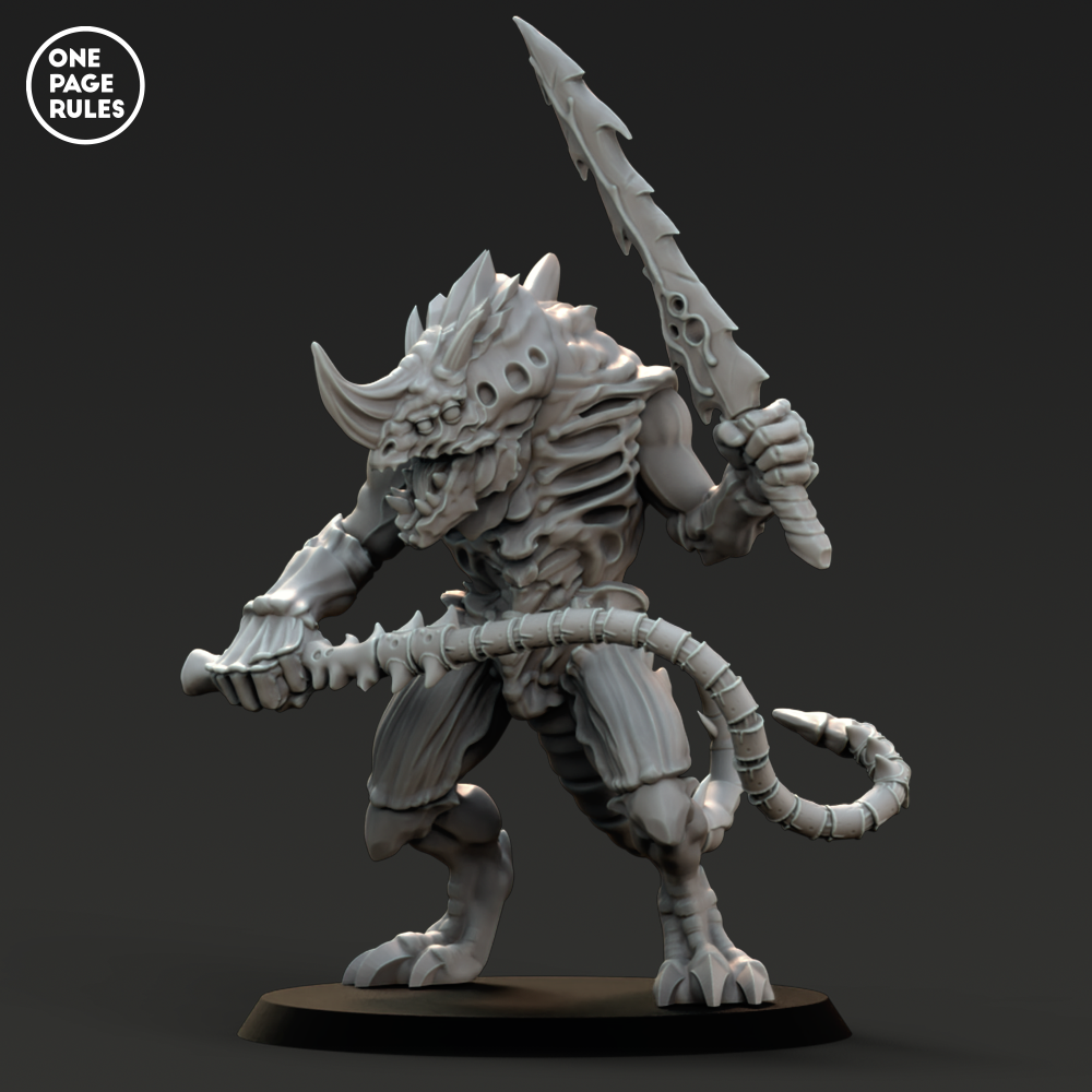 The original model was made by One Page Rules and printed with resin by us here at Miniature Horde. This model was designed to be used in the game Grimdark Future Which rules are available in thier Starter Sets, and the Army Forge where the rules for every army is availbale for Free