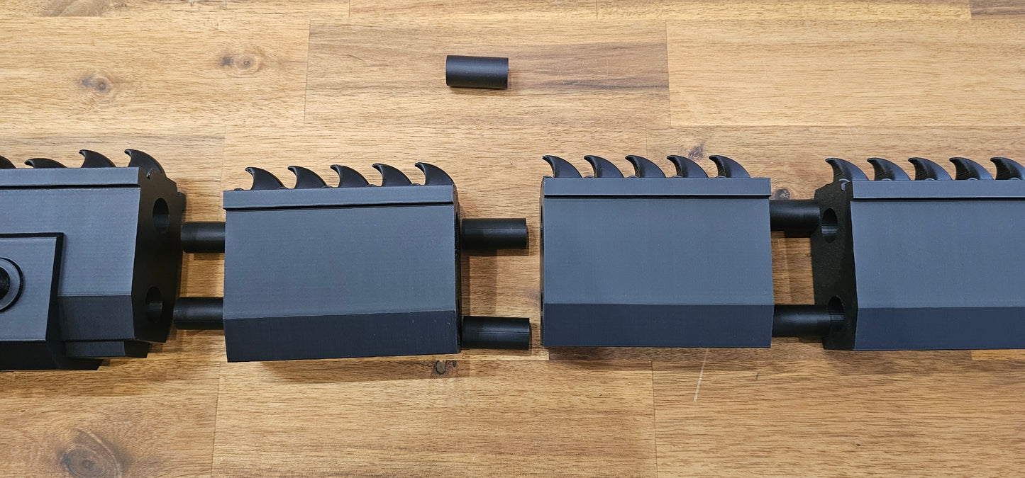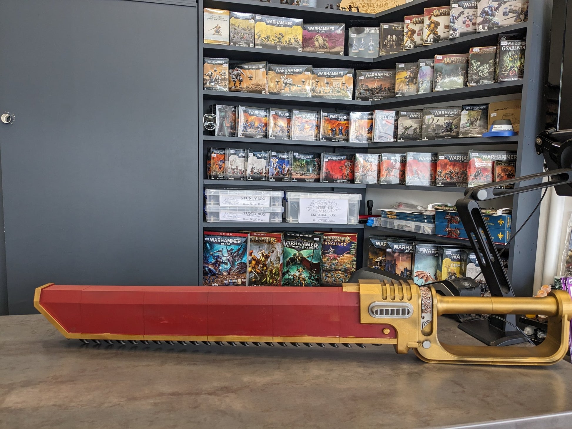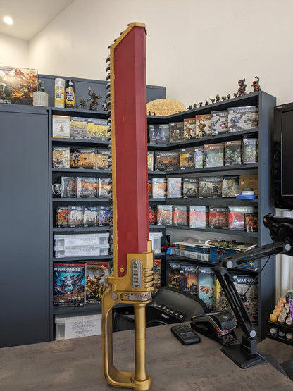 A life sized 3d printed replica of a Space Marine chainsword.