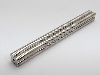 Disc Coating: Neodymium magnets are a composition of mostly Neodymium, Iron and Boron. If exposed to the elements, the iron in the magnet will rust. To protect the magnet from corrosion our magnets are triple plated with layers of nickel, copper, and nickel ( NiCuNi ) which is what gives them that characteristic smooth silver appearance.
