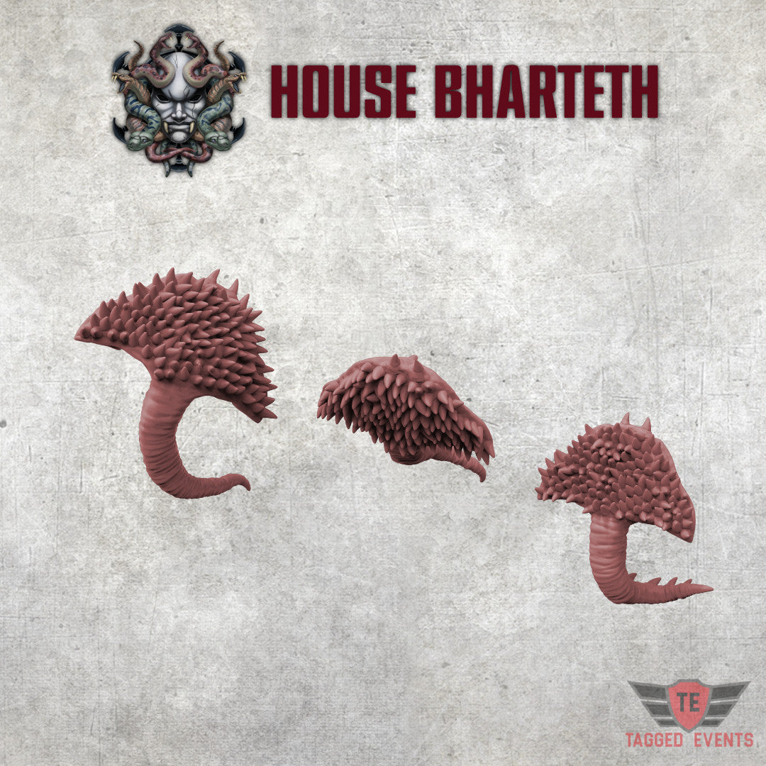 These models are a part of the House Bharteth set. The original model was designed by Tagged Events and printed with resin by us here at Miniature Horde.