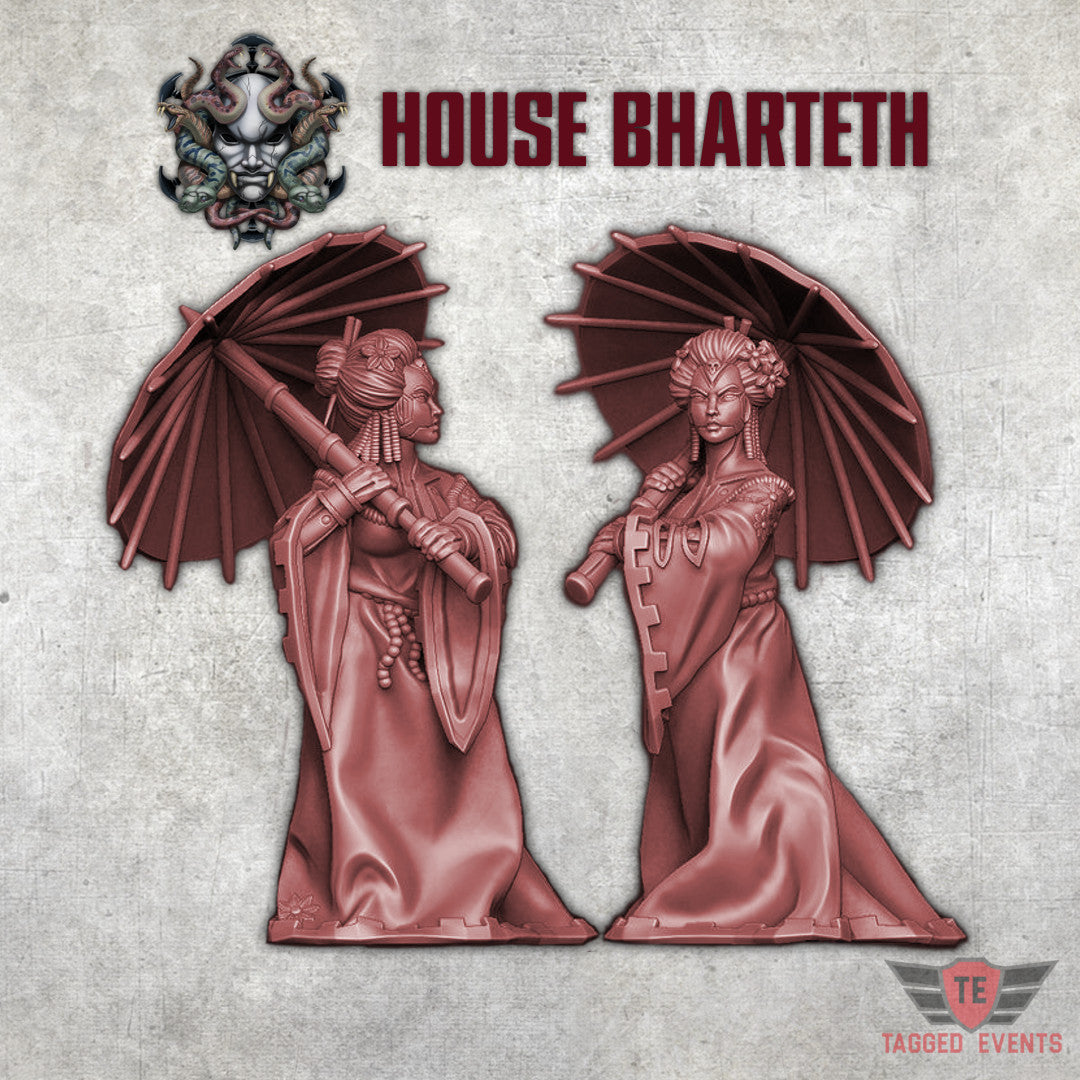These models are a part of the House Bharteth set. The original model was designed by Tagged Events and printed with resin by us here at Miniature Horde.