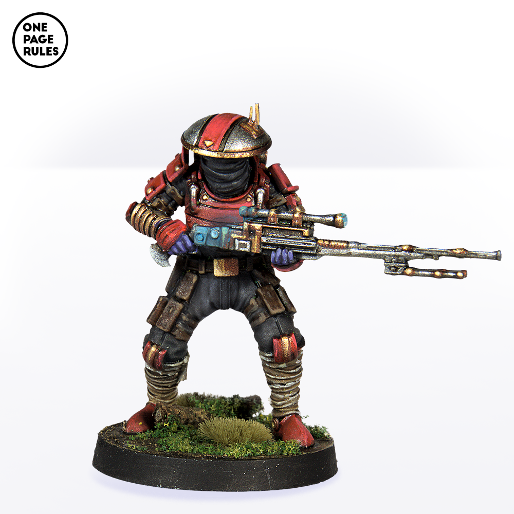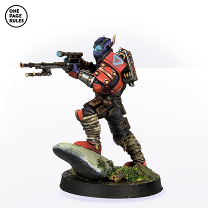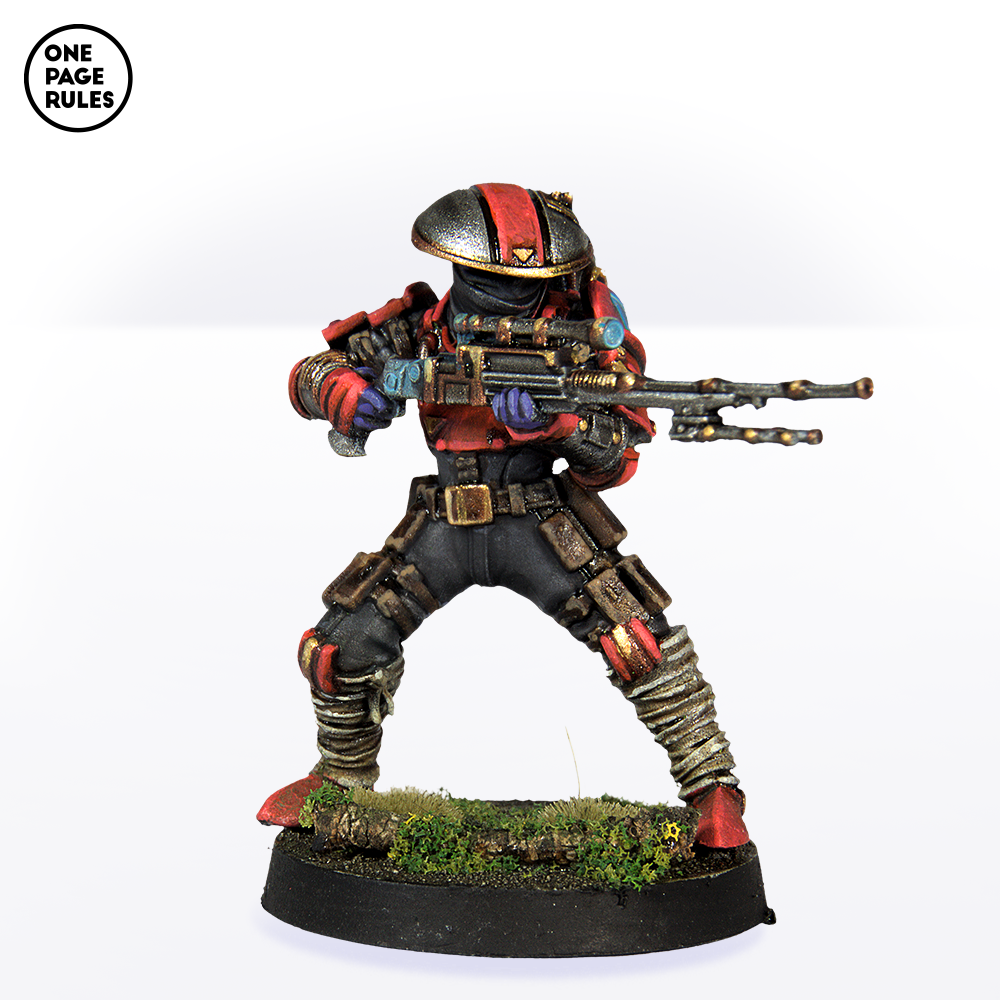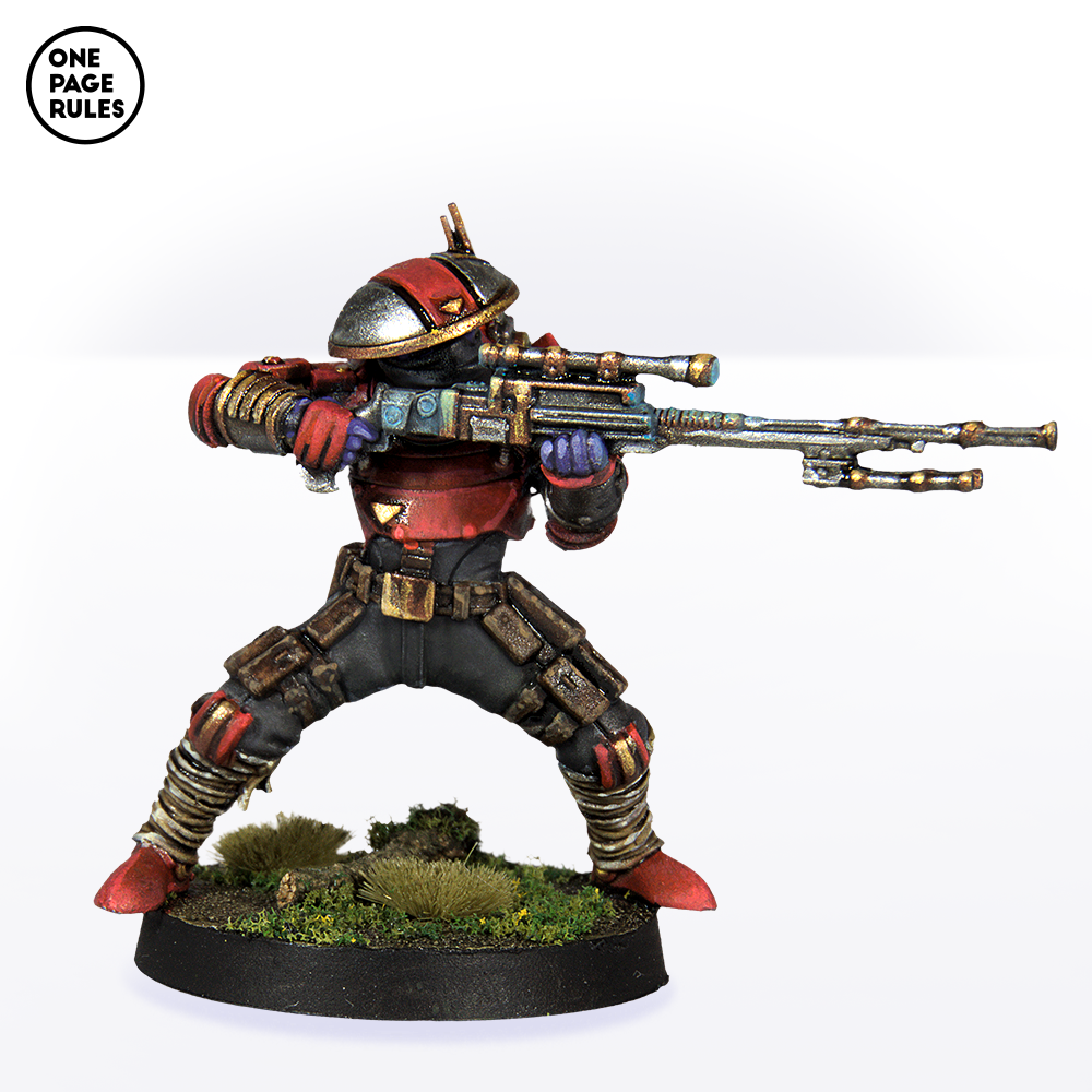 The original model was made by One Page Rules and printed with resin by us here at Miniature Horde. This model was designed to be used in the game Grimdark Future Which rules are available in thier Starter Sets, and the Army Forge where the rules for every army is availbale for Free