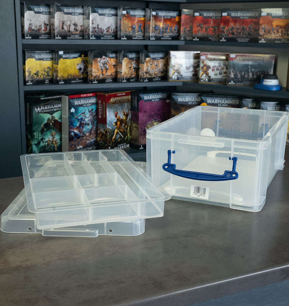 The Skirmish Box is the perfect solution for the skirmish game player this box will fit numerous gangs/warbands as well as all the tokens and dice in the sectioned tray.