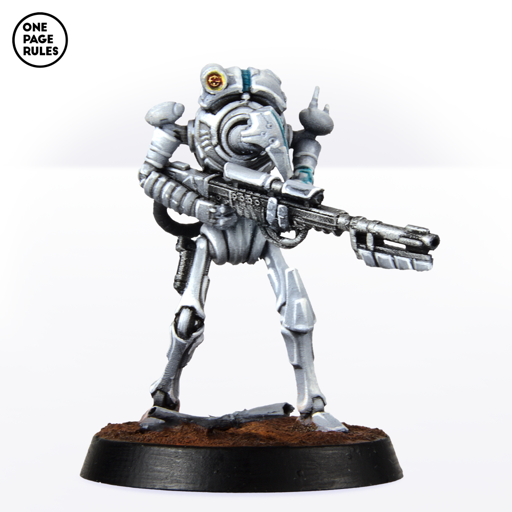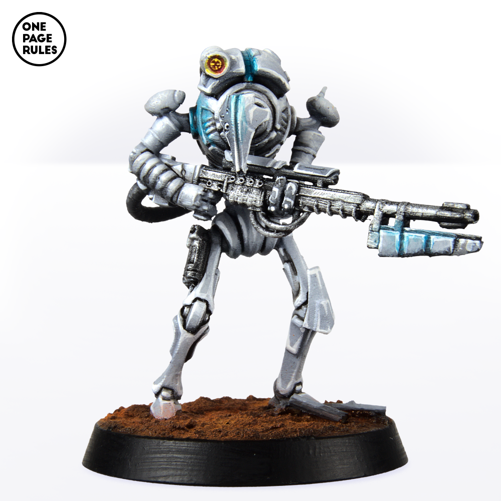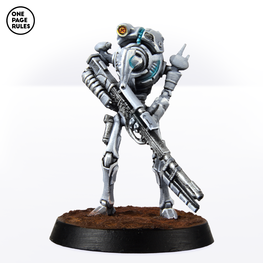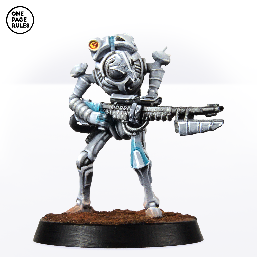 The original model was made by One Page Rules and printed with resin by us here at Miniature Horde. This model was designed to be used in the game Grimdark Future Which rules are available in thier Starter Sets, and the Army Forge where the rules for every army is availbale for Free