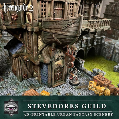 This model has loads of character! Built into the remains of a ruined arch, this kit also features a boat hull as a balcony, setting it firmly within the harbour district. It can be built with or without a sign, if you'd prefer.