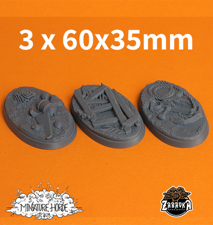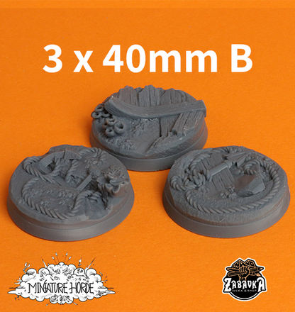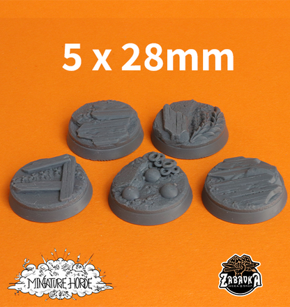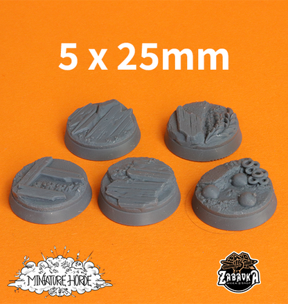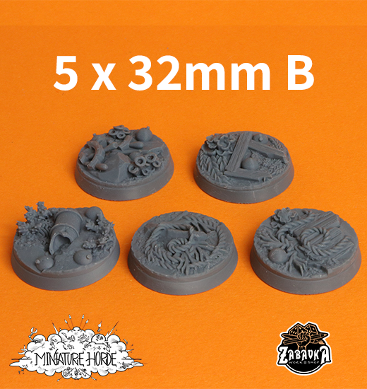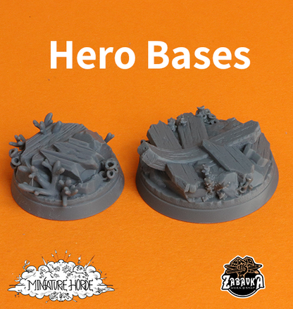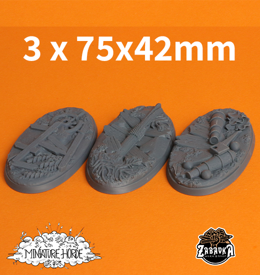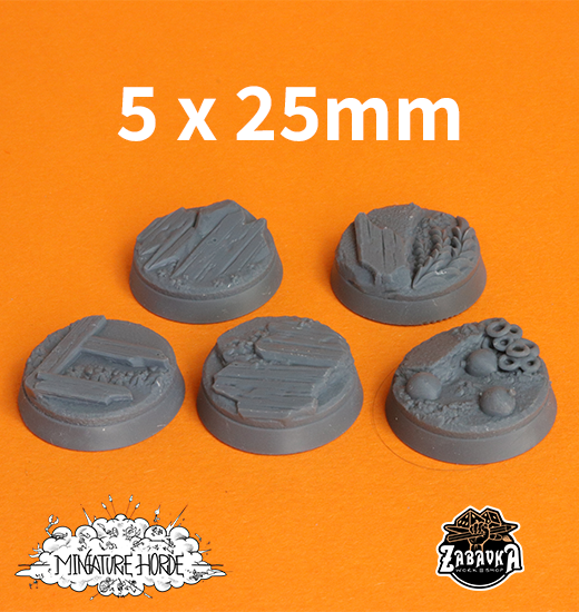 These bases are a combination of Miniature Hordes fantastic bases and toppers from 2 different Kickstarters by the talented people from Zabavka Workshop. To help make sure our customers have all the options for their models we have adapted some of these bases to fit the missing base sizes from the kickstarter these are listed with Adapted.