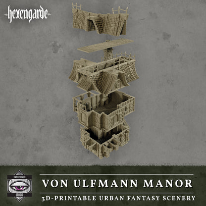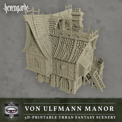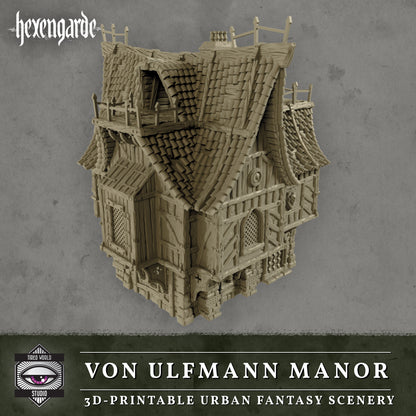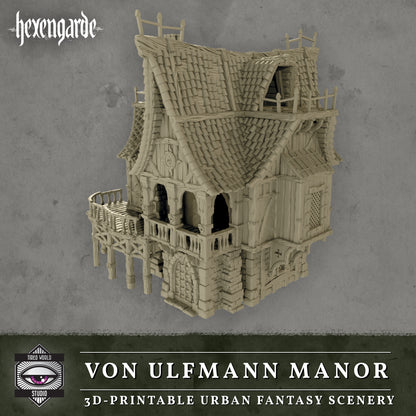 Von Ulfmann Manor is the perfect home for an established merchant or Noble wanting to downsize in the lovely City of Hexengarde, this 3 Story home with a open stone fireplace on the 2 main floors. The ground floor is solid stone construction. First floor has a lovely veranda and wattle and daub walls. The attic has 2 balconies for the star gazers out there.