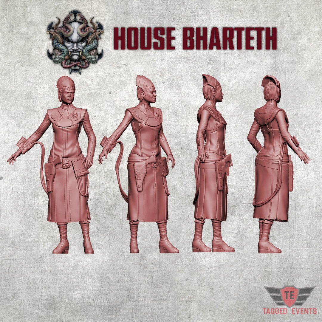 These models are a part of the House Bharteth set. The original model was designed by Tagged Events and printed with resin by us here at Miniature Horde.